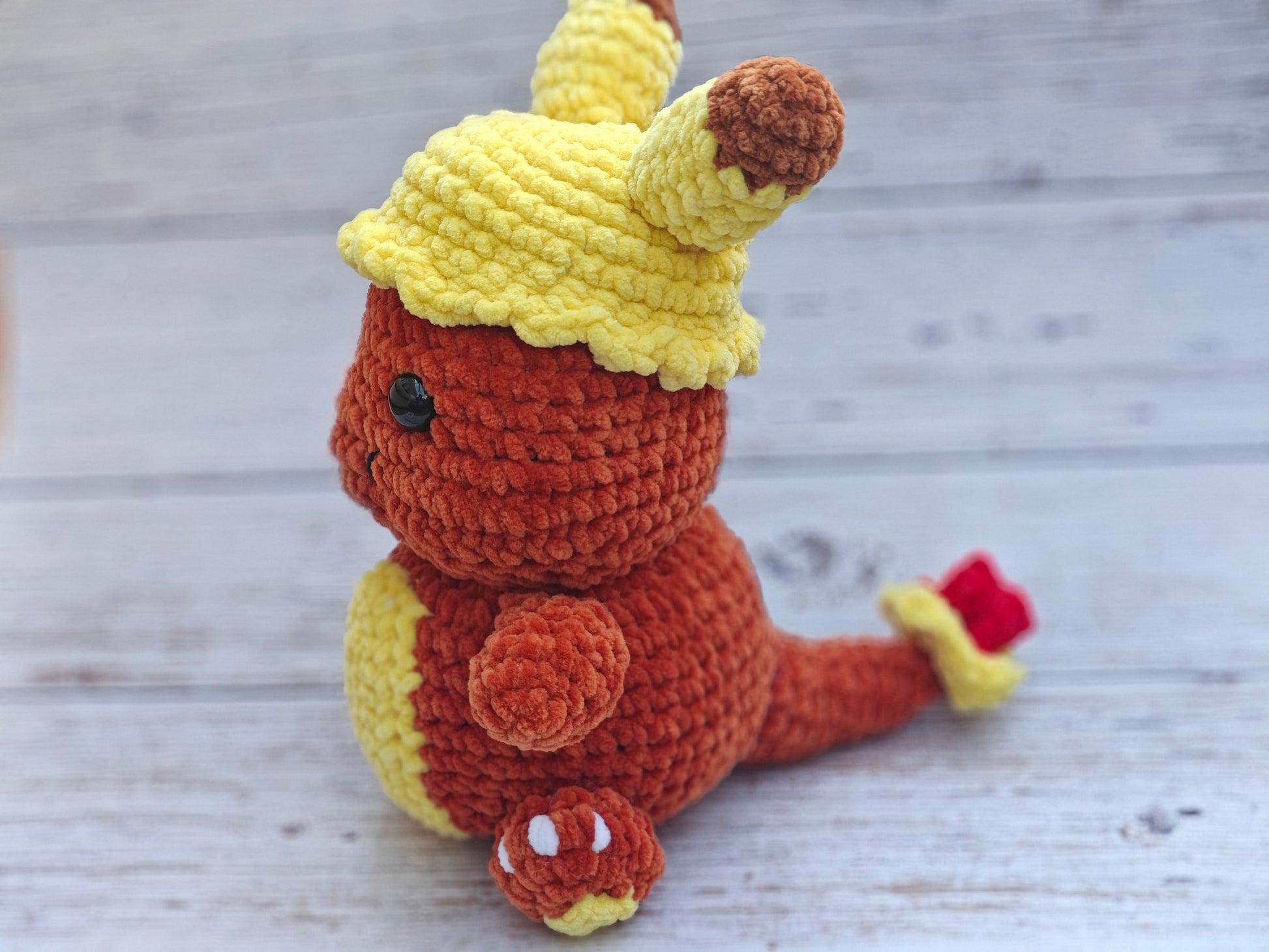 Meet our Fire Monster plushie, the cuddliest flame in town! This adorable little hothead comes complete with a stylish hat that adds extra personality to its already charming appearance. Perfect for snuggling, displaying, or embarking on imaginary adventures.